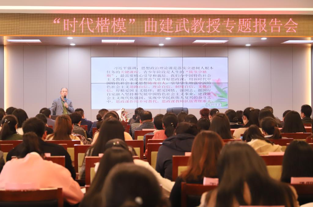 从辅导员到学校党委副书记,再到教育厅副厅长、正厅级干部,再从正厅级干部主动辞职回归到辅导员岗位,曲建武教授展示了一个时代楷模的光辉形象和共产党员的人生追求,他的大爱与无私,深深感染着在座的每一人。此次报告,不仅提高了思政工作者的职业认同感,增强了教师教书育人的责任感和使命感,更加深了大家对“立德树人”根本任务的深刻理解。报告会在校园内引起热烈反响,大家纷纷表示要向曲教授学习,因为有信仰而去讲信仰、因为有情怀而去讲情怀、因为有爱而去散播爱的种子,在中国特色高水平高职学校建设中更好地发挥思政队伍的责任和担当。