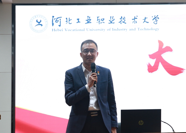 汇报中,周文涛以《实干让青春梦想照进现实》为主题,结合自身多年来根植一线的经历,讲述他由一名青涩大学生蜕变成技术过硬、荣誉等身的技能大师的成长故事,鼓励同学们要保持脚踏实地、精益求精、善于总结、敢于创新的学习态度,夯实专业基础、提升自身技能,不断向更高的目标奋力前进。高峰以《担当时代使命,成就精彩人生》为主题,为同学们讲解国家“一带一路”战略以及中塞两国的友谊渊源,以自身在国外生活的体会与感悟讲述几十年来国家的发展与时代的变迁,激励同学们将个人理想融入到祖国与民族的发展中去,勇担时代赋予的使命,勇往直前,不负芳华,书写精彩人生。