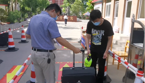 学生入校环节。学校门口设置行李消杀处、体温检测处、身份核验处,由学校老师负责测温检查。通过体温监测、消毒、登记,身份确认,确认无异常后方可入校。
