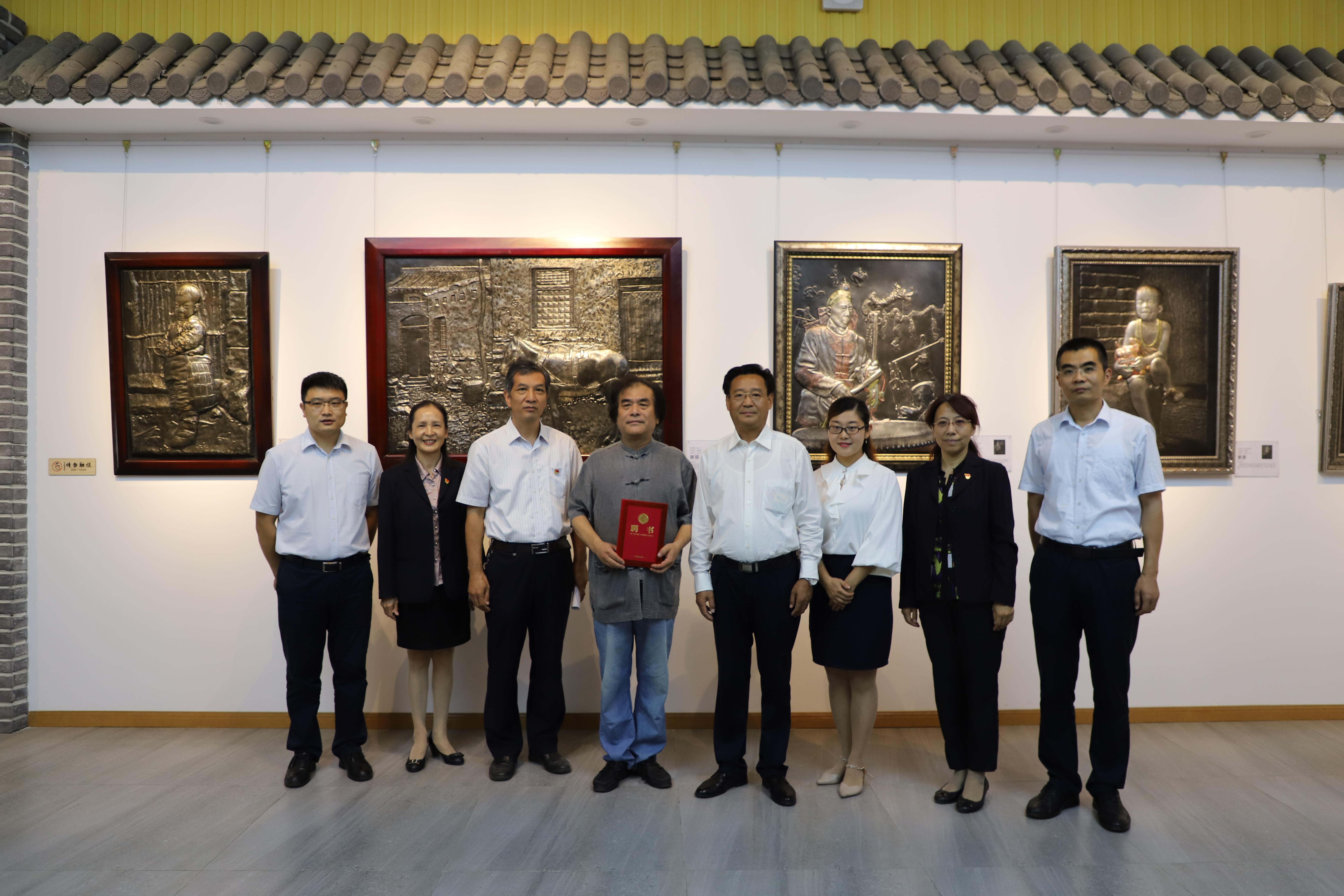 “保护、传承和创新民族传统工艺与非物质文化遗产,加强技术技能积累”是学院近年来拓宽办学思路和办学职能的特色做法。9月20日下午,学院院长贾俊礼、党委副书记王建刚来到学院“郭海博铁板浮雕艺术馆”,为郭老师送来“客座教授聘书”。