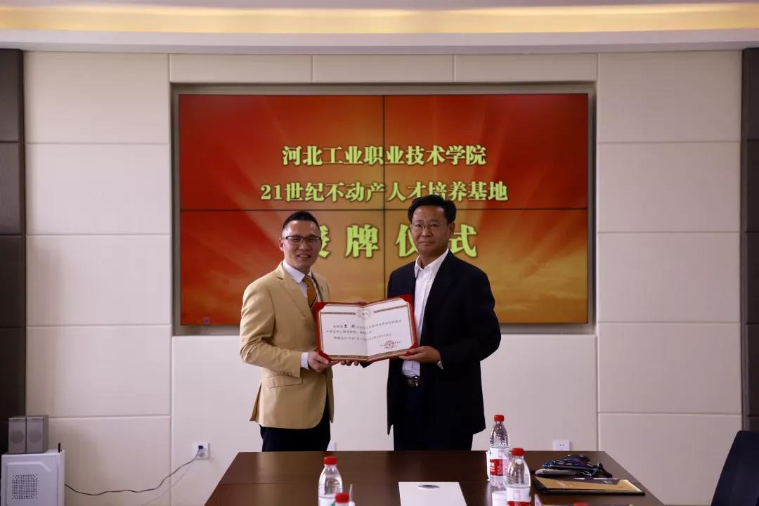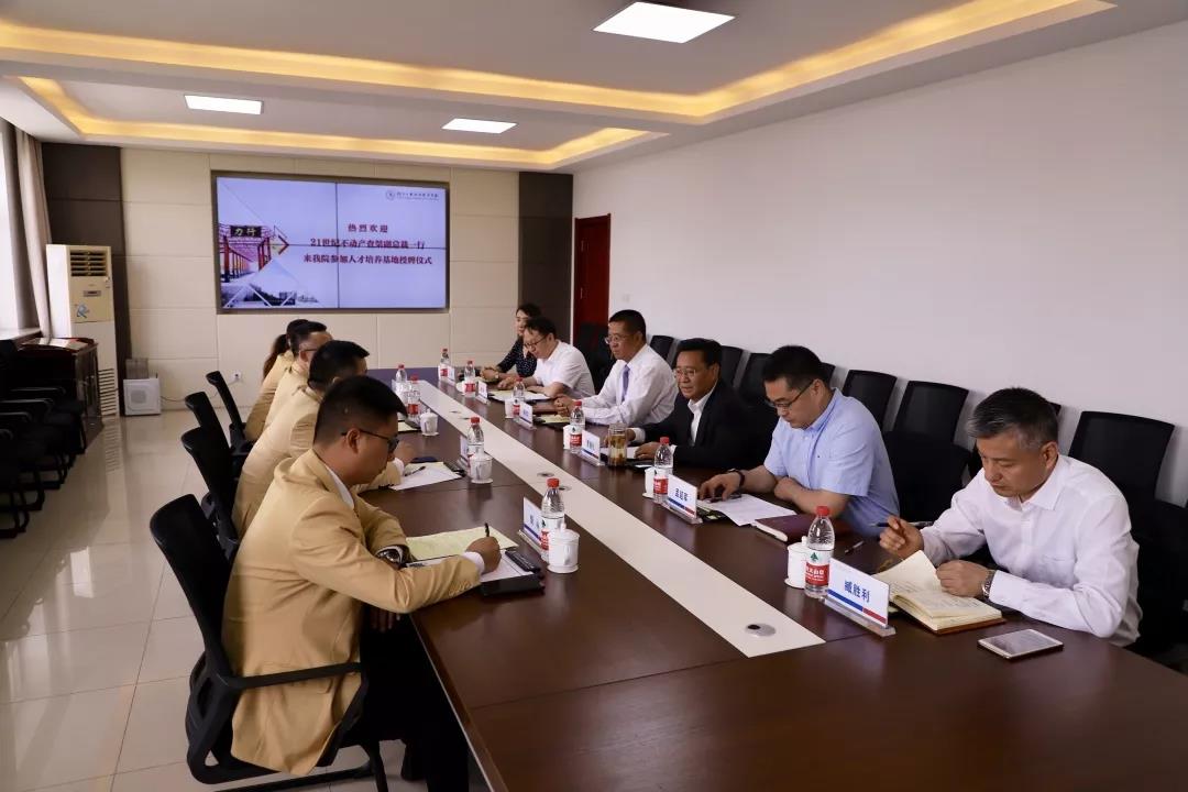 授牌仪式上,贾俊礼院长致欢迎词,对查桀副总裁一行的到来表示热烈欢迎。随后,贾院长向来宾详细介绍了学院基本情况以及近年来取得的发展成就。贾院长强调,21世纪不动产人才培养基地校企合作项目的落地,对提高学生就业能力、提高学生社会竞争力将起到至关重要的作用。贾院长表达了希望双方开展交流合作的美好愿望。查桀副总裁在授牌仪式上介绍了企业整体发展情况,他介绍说,21世纪不动产作为全球最大的专注住宅市场的特许经营机构,覆盖全球80个国家和地区,在中国129个主要城市开设了6000多家门店,人才需求量巨大。孔明副总经理介绍了企业人才需求情况,他表示,校企双方可以通过共建实习实训基地、组织师资培训、开展现代学徒制培养等途径,实现校企深度合作。