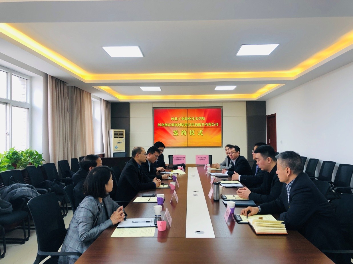 河北创富蓝海国际贸易咨询服务有限公司是由省内20家优质外贸企业联合发起的,是一家致力于为外向型企业提供国际贸易相关人才服务的专业机构。此次签约,双方本着“战略合作,优势互补,协同创新,共同发展”的原则,促进职业教育发展,有助于实现高校人才培养与企业用人的无缝衔接,对实现校企双赢,优势互补,资源共享,进一步提高人才培养质量具有积极的现实意义。