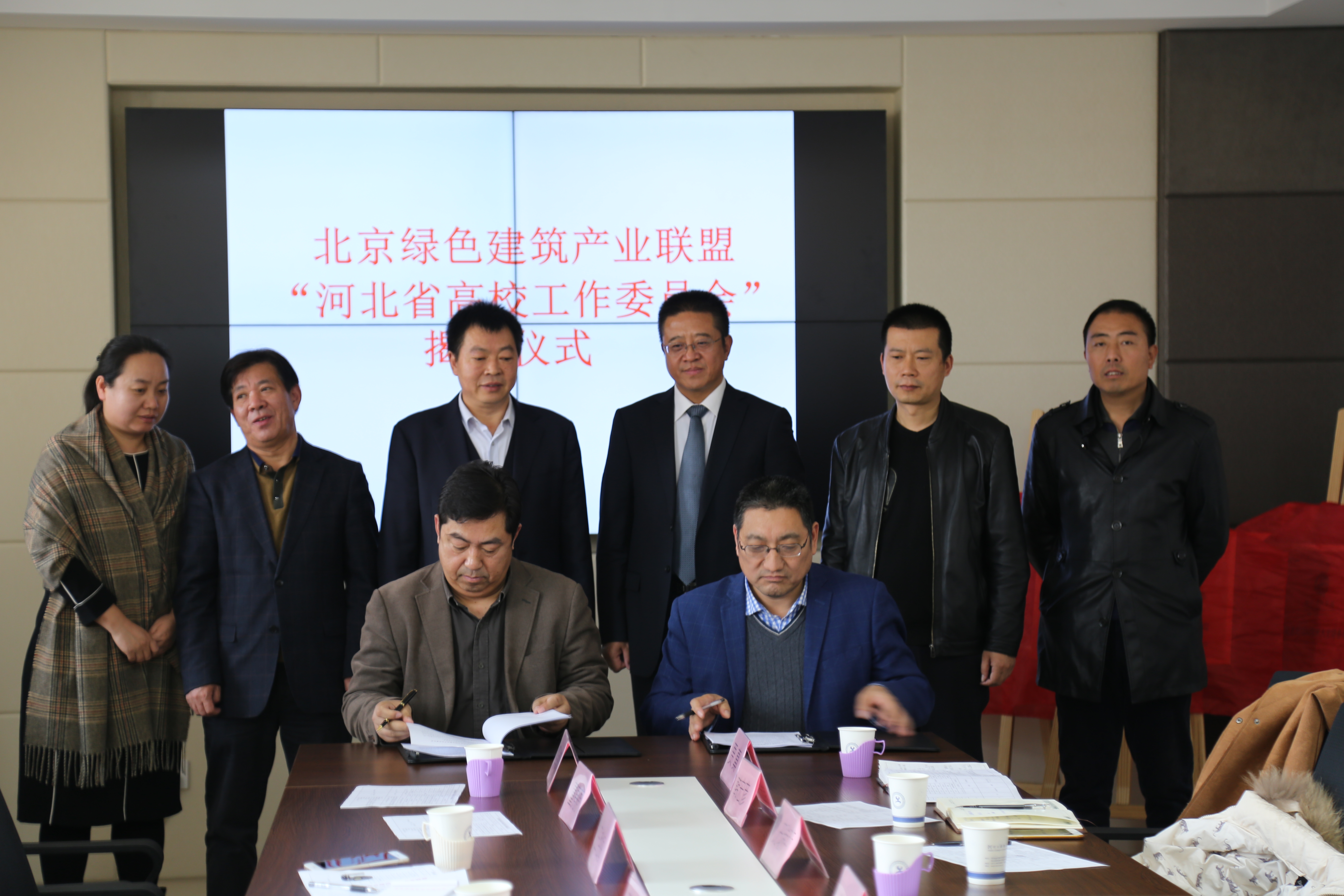 2018年11月13日,“北京绿色建筑产业联盟河北省高校工作委员会”揭牌仪式在我院举行。学院副院长韩提文、北京绿色建筑产业联盟执行理事长陆泽荣、副理事长线登洲、秘书长齐运全、建筑工程系负责人以及相关教师代表出席了揭牌仪式。