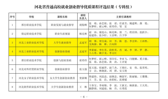河北省普通高校就业指导优质课程评选结果(专科组)