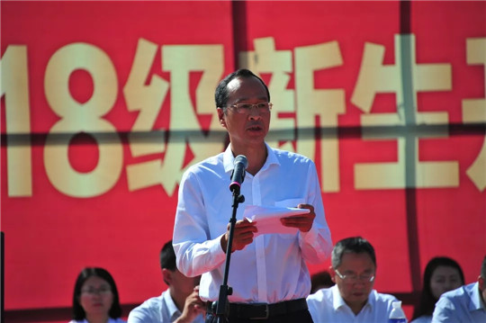 党委王振杰书记发表讲话,他首先代表学院领导和全体师生员工向以优异成绩考取河北工院的2018级新同学的到来表示热烈欢迎,并强调未来几年,同学们将见证学院快速发展的新变化,也将在更加先进优越的办学条件中,开始新的大学生活,开启成长成才、求知探索的新的重要人生旅程。王书记指出,河北工院不仅能为大家提供锻炼扎实技能的课程、启迪心智的课程、深邃洞察的讲座、挑战自身的实践、丰富多彩的社团,更将会激活大家心中的梦想,唤醒所有学子的铁肩担当。希望同学们对自己大学生活进行合理有效的规划,为未来的人生和发展,插上腾飞的翅膀,成为新时代的大国工匠!