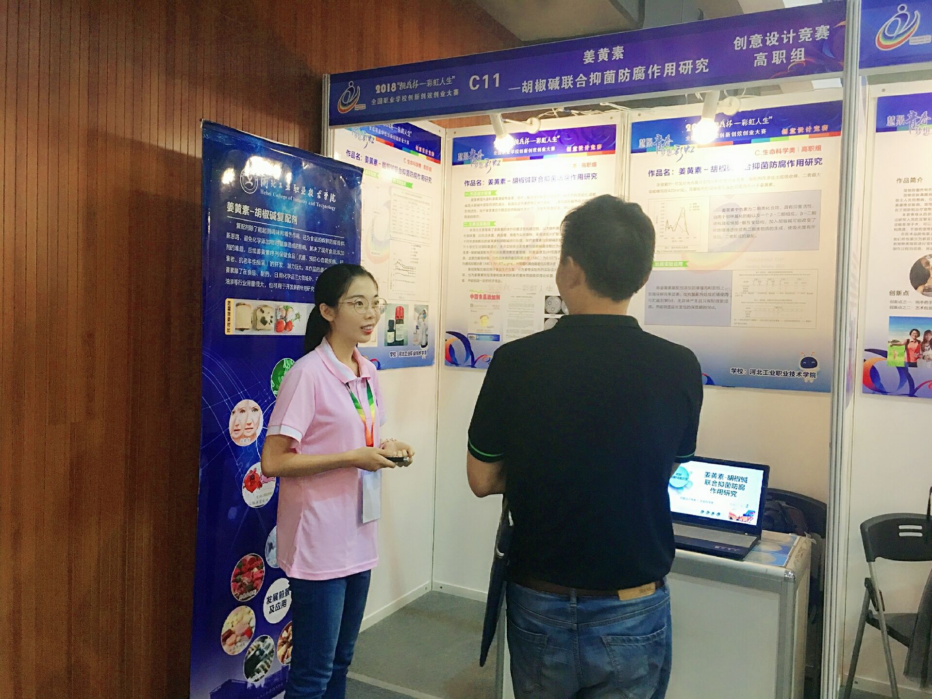 8月17日,由共青团中央、教育部、人力资源和社会保障部、中国科协、全国学联、江苏省人民政府共同主办的2018年“挑战杯——彩虹人生”全国职业学校创新创效创业大赛决赛在南京江宁体育中心落下帷幕。由我院环境与化学工程系郭立达、吕芳、王惠娟老师指导的学生作品《姜黄素——胡椒碱联合抑菌防腐作用研究》,经过复赛和决赛专家的严格评审,在参赛的全国近556所职业学校的929件作品中脱颖而出,夺得“特等奖”的优异成绩。该参赛作品实现了我院在此项全国赛事中的零突破,更是河北省在此项全国赛事中的重要突破。