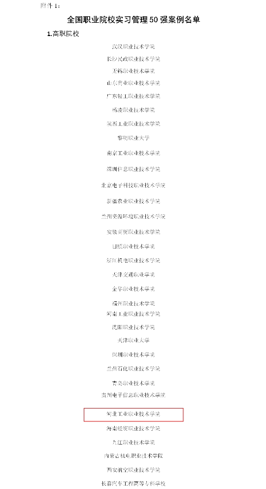 近日,教育部职业技术教育中心研究所发布全国职业院校实习管理50强案例遴选结果,学院成功入围,成为河北省唯一入选的高职院校。