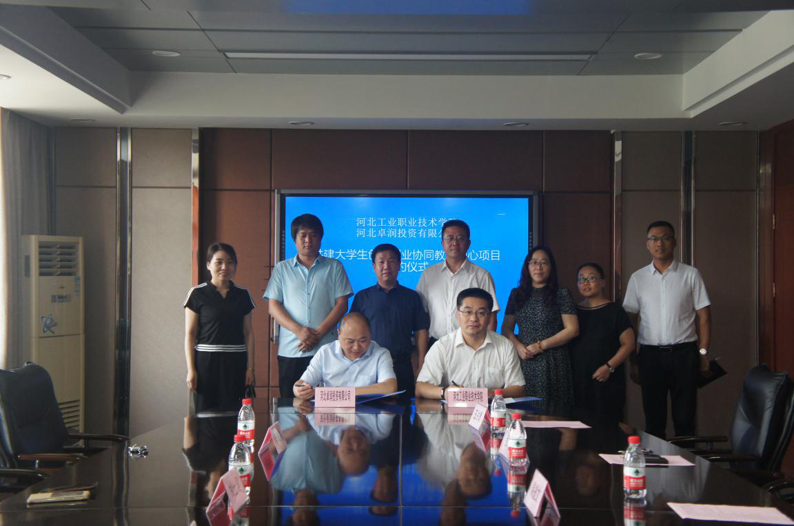5月25日下午,我院与河北卓润投资有限公司在办公楼B406会议室举行“大学生创新创业协同教育中心”项目签约仪式,河北卓润投资有限公司董事长、学院1996级优秀校友刘士学等四位企业代表,学院副院长韩提文教授,招生就业指导中心、党政办公室、应用技术研发中心等部门负责人共同出席签约仪式。