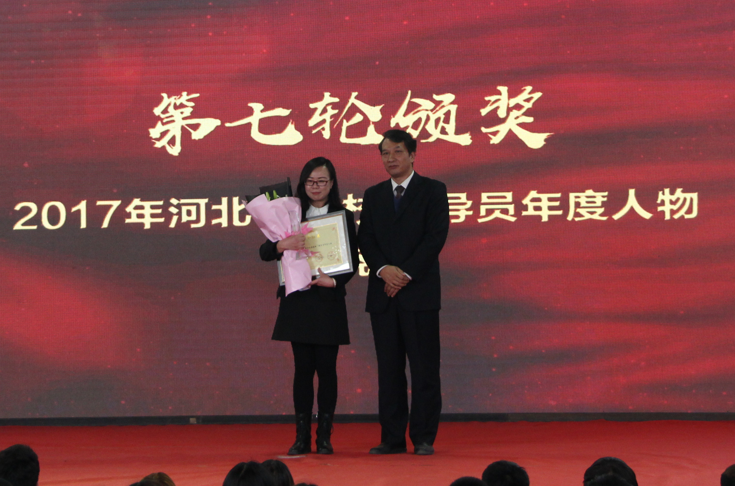 党委副书记王建刚教授为2017年河北省高校辅导员年度人物何晓卉老师颁奖