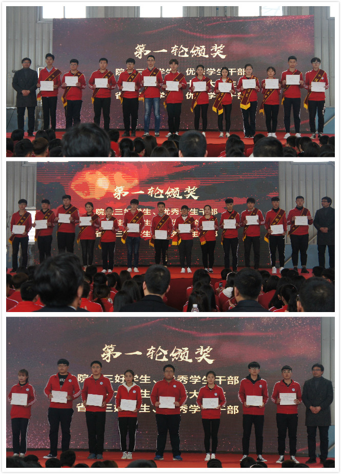 院级“三好学生”、“优秀学生干部”;院级“十佳大学生”、“十优大学生”;省级“三好学生、省级“优秀学生干部”获奖代表颁奖现场