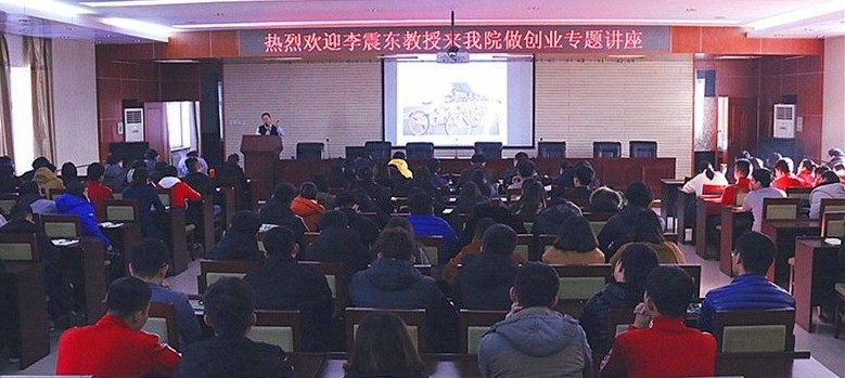 12月19日上午,全国创新创业指导专家,哈尔滨伯马创业研究院院长,“中国大学生登广告求职第一人”李震东教授应邀来到我院,为学院广大师生做题为“创业改变命运,创新改变未来”主旨报告,学院各系领导、创新创业导师、创业意愿学生等250余人全程聆听此次报告。