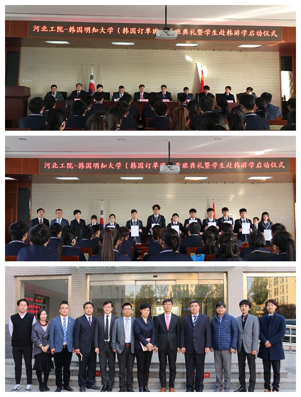 11月15日,河北工业职业技术学院数字媒体应用技术专业(韩国订单班)新生开学典礼在行政楼五楼报告厅举行,学院张福仁副院长、韩国明知大学国际交流学院金庸达院长,韩国明知大学社会教育学院白商泫部长,设计学院金亨奎主任,设计学院林坰焄教授,明知大学中方代表处邵敬勇总裁以及学院国际交流中心、计算机技术系相关负责人出席仪式。