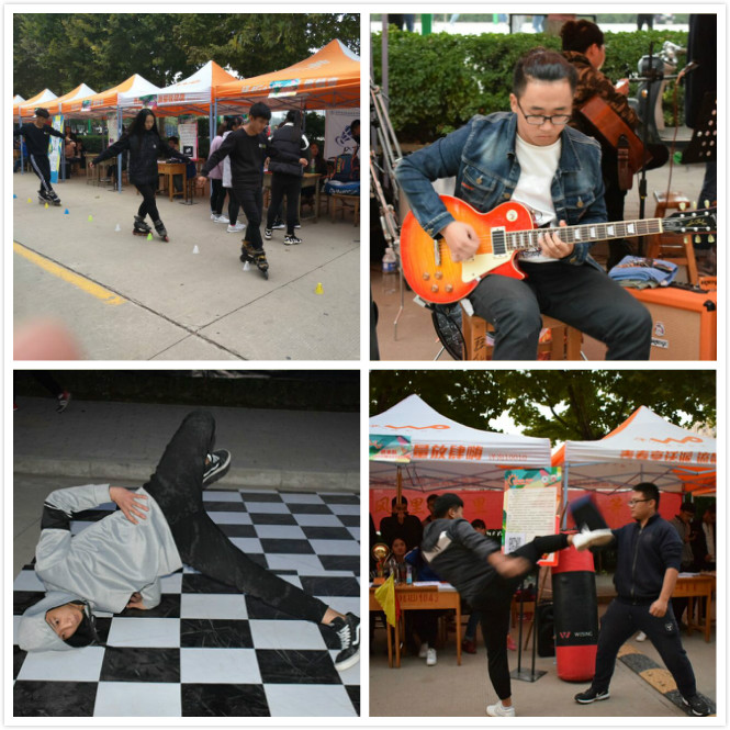 在纳新现场,一些富有感召的条幅、海报吸引着同学们的目光,“青春不是去观望,而是去体验”、“给你浪漫告白,陪你青春岁月”等标语让同学们感受到了社团的氛围。为了让同学们深入了解社团的特点和活动,社团都使出了看家本领,展现自身的特色。琳琅满目的手绘展板、酷炫十足的社团表演、丰富多样的互动体验,路过同学的目光仿佛被无形的线牵引,纷纷停驻脚步。Moment Crew街舞社的舞者随着音乐跳起机械舞,颇有趣味。“风之舞”轮滑社的社员们在轮滑鞋上舞动青春,轻快的身影在障碍物间穿梭自如,Always动漫社的cosplay表演新奇有趣,吸引了众多新生的关注。墨武跆拳道社的同学身手矫捷,赢得了阵阵掌声。路引吉他社和弦上音吉他社的表演或温暖或动感,引人关注。