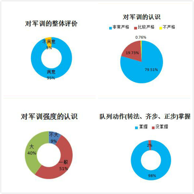 2017年新生军训工作已圆满结束,经过对全体新生详细的问卷调查,发放问卷5802份,回收率100%。调查结果显示,新生表示对本次军训的满意度达到95%以上,对良好习惯养成度达到98%以上,90%以上的新生表示对军训自训模式表示认可,并对教官的训练表示满意。长期以来,河北工业职业技术学院鼓励学生将个人发展和国家战略需求紧密结合,把论文写在祖国大地上。学校不断将基础研究、前沿探索等领域优势,转化为创新国防教育的新模式。如何将学院的专业优势、科研优势,转化为一线思政教师的育人优势,是我们不断思考的命题,我们希望通过专业第一课堂与军训第二课堂的深度融合,为学院“大思政”格局构建提供支撑,实现立德树人润物无声的目标。