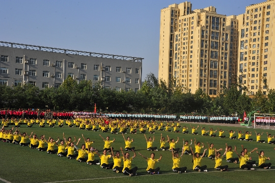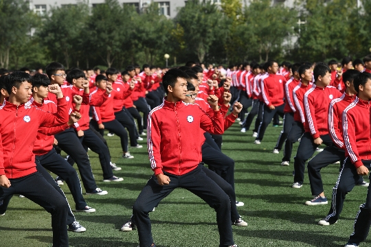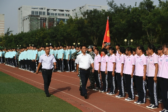 伴着和煦的秋风,鲜艳的五星红旗随着雄壮的国歌冉冉升起。学院院长贾俊礼用饱满的精神逐一检阅了受训方队。在检阅过程中,贾院长不断地向受阅同学致以亲切的问候。随后,各方队进行了分列式及队列会操表演,学生们队列整齐划一,步伐铿锵有力,嘹亮的口号在会场上空久久回荡,充分展现了我院学子团结进取、积极向上的良好精神风貌。各方队逐一展示了团体操表演、内务整理表演、女子匕首操表演、军体拳表演、军歌合唱等精彩环节,用昂扬的精神状态迎接新起点的挑战,用豪情满怀的热情赢得了与会领导、老师及其他受训新生的阵阵掌声。