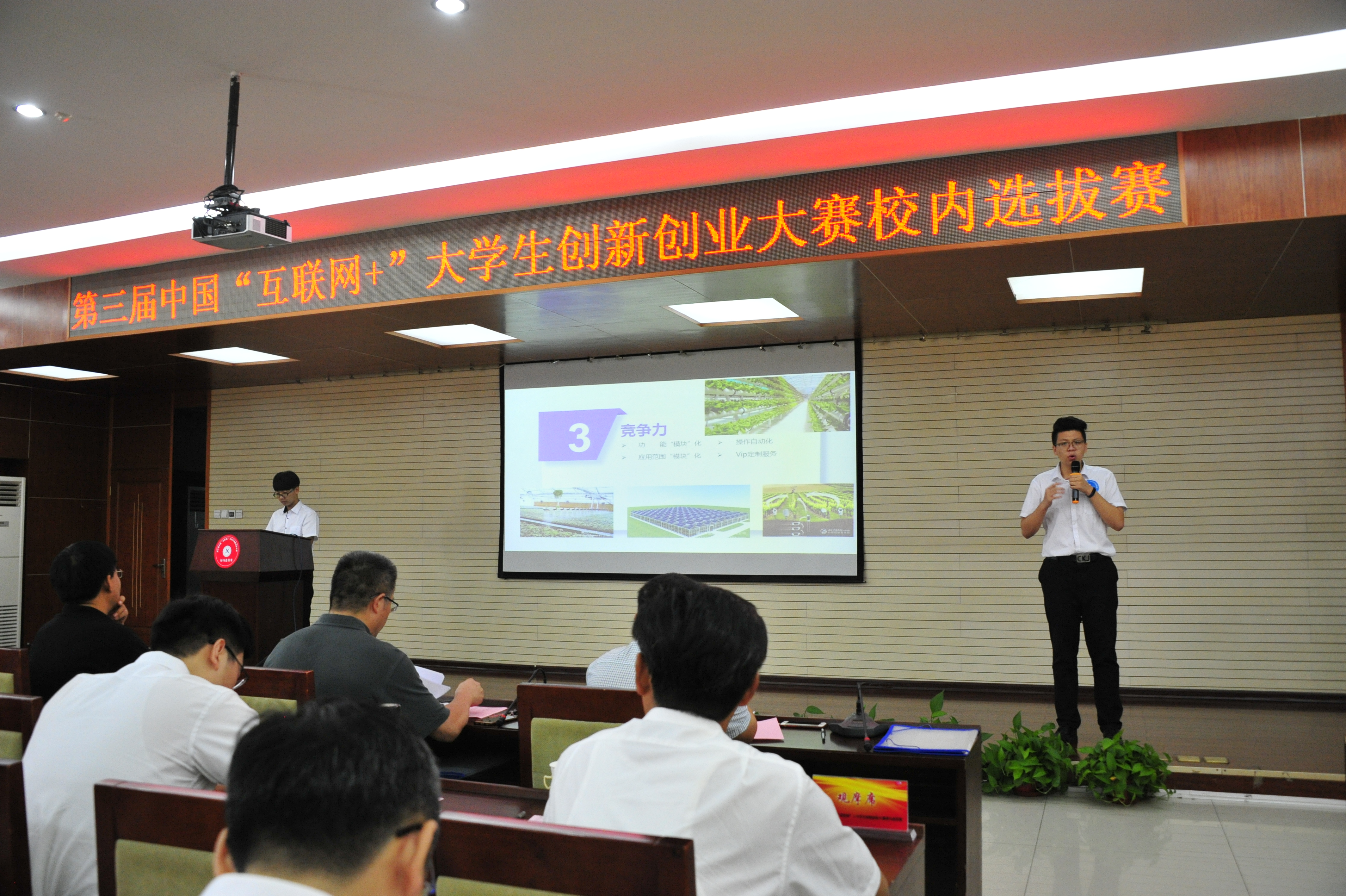 中国“互联网+”大学生创新创业大赛是目前国内规模最大,规格最高的一项重大赛事,也是实现创新创业项目和社会投资对接的重要平台。此次校内选拔赛各系共上报566个参赛项目,参与学生人数达到2481人,参与项目指导教师66人,项目涉及“互联网+”制造业、现代农业、信息技术服务、文化创意服务、商务服务和公共服务等六大领域。经过层层选拔,选出29个项目参加本次校内赛。比赛共分为视频播放、PPT演示和评委提问三个环节。比赛期间,选手们结合多媒体对自己的创业项目进行了展示,包括企业概述、市场分析、风险因素、投资回报、组织管理等内容。参赛选手精彩的表现、缜密的思维、得体的语言,不时博得观众的热烈掌声。面对专家评委的提问,他们应对从容、冷静,表现出了良好、默契的团队配合。经过5个小时的激烈角逐,大赛评选出了特等奖1名;一等奖2名;二等奖3名;三等奖5名。