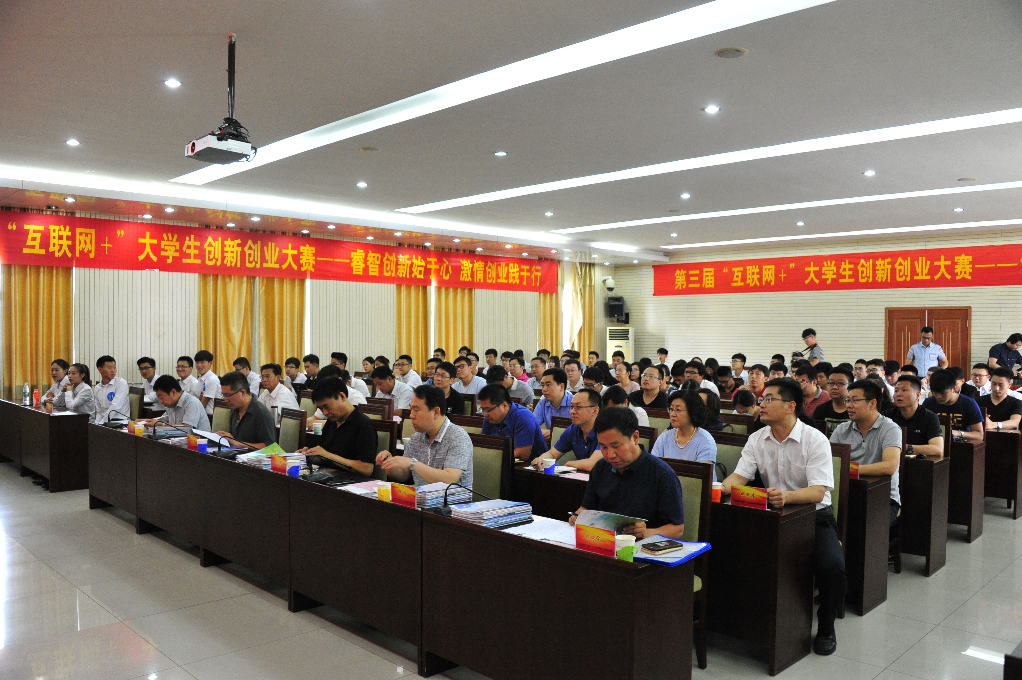 为深入贯彻落实《国务院办公厅关于深化高等学校创新创业教育改革的实施意见》(国办发【2015】36号),进一步激发学院学生创新创业热情,学院于6月16日在五楼报告厅隆重举办第三届中国“互联网+”大学生创新创业大赛校内选拔赛。本次大赛邀请了河北省就业局李会朋处长、河北经贸大学招生与就业处张振处长、石家庄铁道大学招生就业处李周南处长、河北卓润投资有限公司刘士学董事长、新道科技股份有限公司河北区秦黎刚副总经理五位省赛专家担任评委。学院院长贾俊礼、副院长付俊薇、副院长韩提文、各相关处室领导、各系负责人、科研团队及创新创业导师等100余名教师全程观摩。