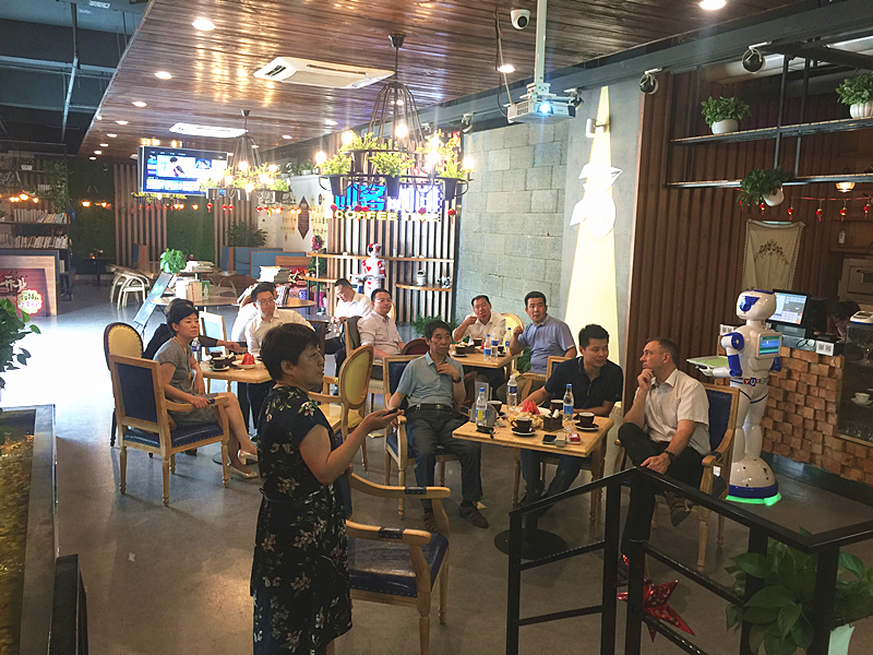 参观结束后,来宾们前往学院大学生创新创业实训基地——创客咖啡参观并进行交流与磋商。付俊薇副院长首先向客人们详细的介绍了我院的基本情况和近年来的国际化发展,并表达了我院希望可以与德国马格德堡大学展开合作,主要集中在教师培训、学生交流、课程建设与引进等方面。双方交流的十分愉快,弗兰克·布宁院长表示此次来访收获颇多,希望在未来双方可以有机会进行合作。
