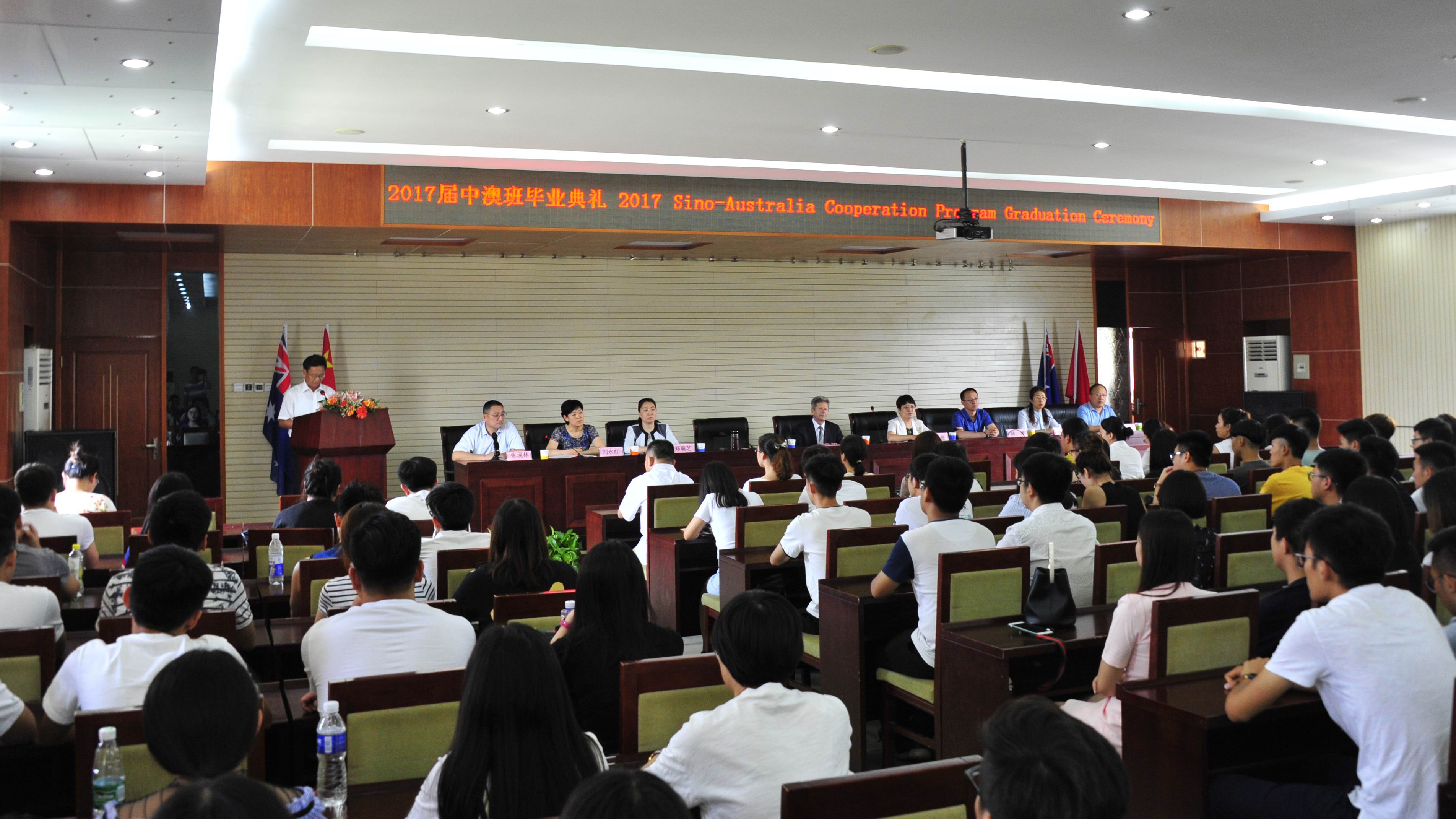 6月19日下午,河北工业职业技术学院2017届中澳班学生毕业典礼在办公楼报告厅隆重举行。澳大利亚墨尔本理工学院中国项目部Philip Nash经理、我院贾俊礼院长、付俊薇常务副院长,教务处、学工部、国际交流中心、建筑工程系负责人应邀出席,中澳班相关师生100余人参加了典礼活动。