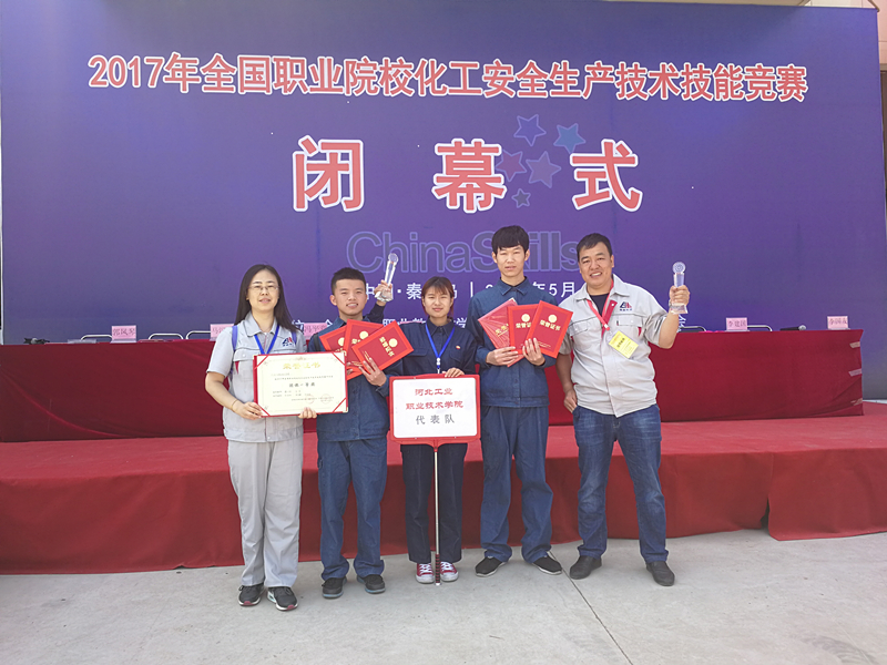 我院环境与化学工程系薛士科、吕芳两名指导教师带领张立朝、杜向阳、郑欣欣三名15级应用化工专业学生与来自全国43所高职院校和一支土库曼斯坦的外国留学生代表队同场竞技,荣获团体一等奖,优秀团队奖的优异成绩。同时,张立朝、杜向阳、郑欣欣三名同学荣获“优秀选手”荣誉称号,薛士科、吕芳两位老师荣获“优秀指导老师”荣誉称号。