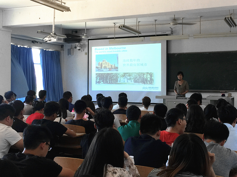 23日下午,澳方代表与15、16级中澳班的学生会面,向同学们介绍了墨尔本理工学院海外合作项目的具体情况,针对学生未来升学和游学的途径与规划做了详细解说。