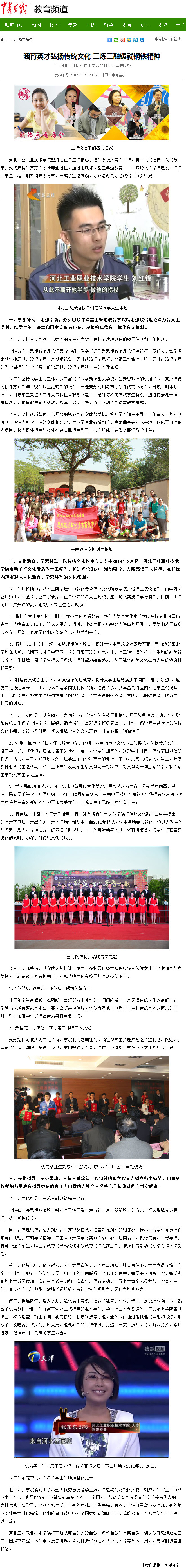 近日,中国青年报网站中青在线对我院思想政治工作进行深度报道。近年来,学院坚持把社会主义核心价值体系融入育人工作,将“铁的纪律,钢的意志,火的热情”贯穿人才培养全过程,通过思政课课堂主渠道教育、“工院论坛”品牌建设、“名片学生工程”朋辈引导等方式,形成了定位准确,思路清晰的思想政治工作新格局。未来,学院将不断以更高的政治自觉、理论自觉和实践自觉,切实做好思想政治工作,围绕京津冀一体化重大历史机遇,全力打造优秀技术技能人才培养基地,用人才支撑制造强国梦想。
