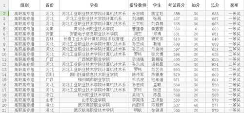我院学子全国预赛河北赛区排名前15名