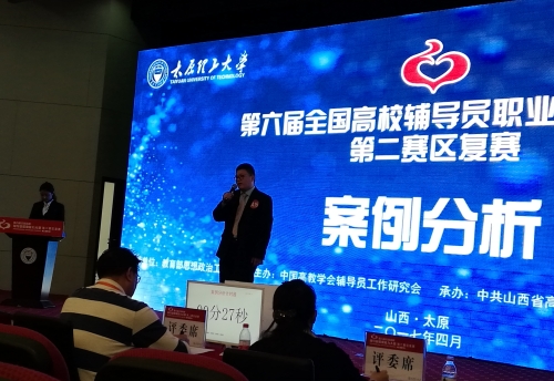 4月27日至28日,由教育部思想政治工作司,中国高教会辅导员工作研究会主办,中共山西省高等院校工作委员会,山西省教育厅以及太原理工大学共同组织的第六届全国辅导员职业能力大赛第二赛区复赛在太原理工大学举行。本次大赛有来自北京、河北、山东、山西、四个省区共40名选手参加,参赛的40名选手均是各省高校辅导员职业能力大赛前三名的获得者。我院机电工程系辅导员雷牧野老师作为河北省省赛特等奖的获奖选手,代表河北省参加本次复赛。经过激烈的角逐,雷牧野老师获得第六届全国辅导员职业能力大赛第二赛区复赛优秀奖。