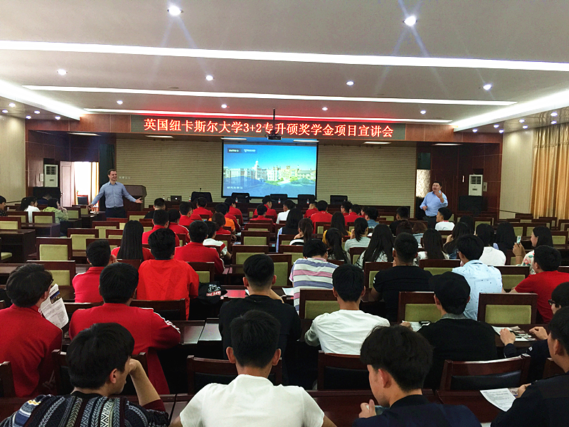 4月18日,英国纽卡斯尔大学高级项目经理Simon·Iley、中国区负责人宋毅先生和河北国际教育交流中心留学部饶景学主任一行3人到我院访问,并为我院学生就3+2专升硕奖学金项目进行了宣讲。