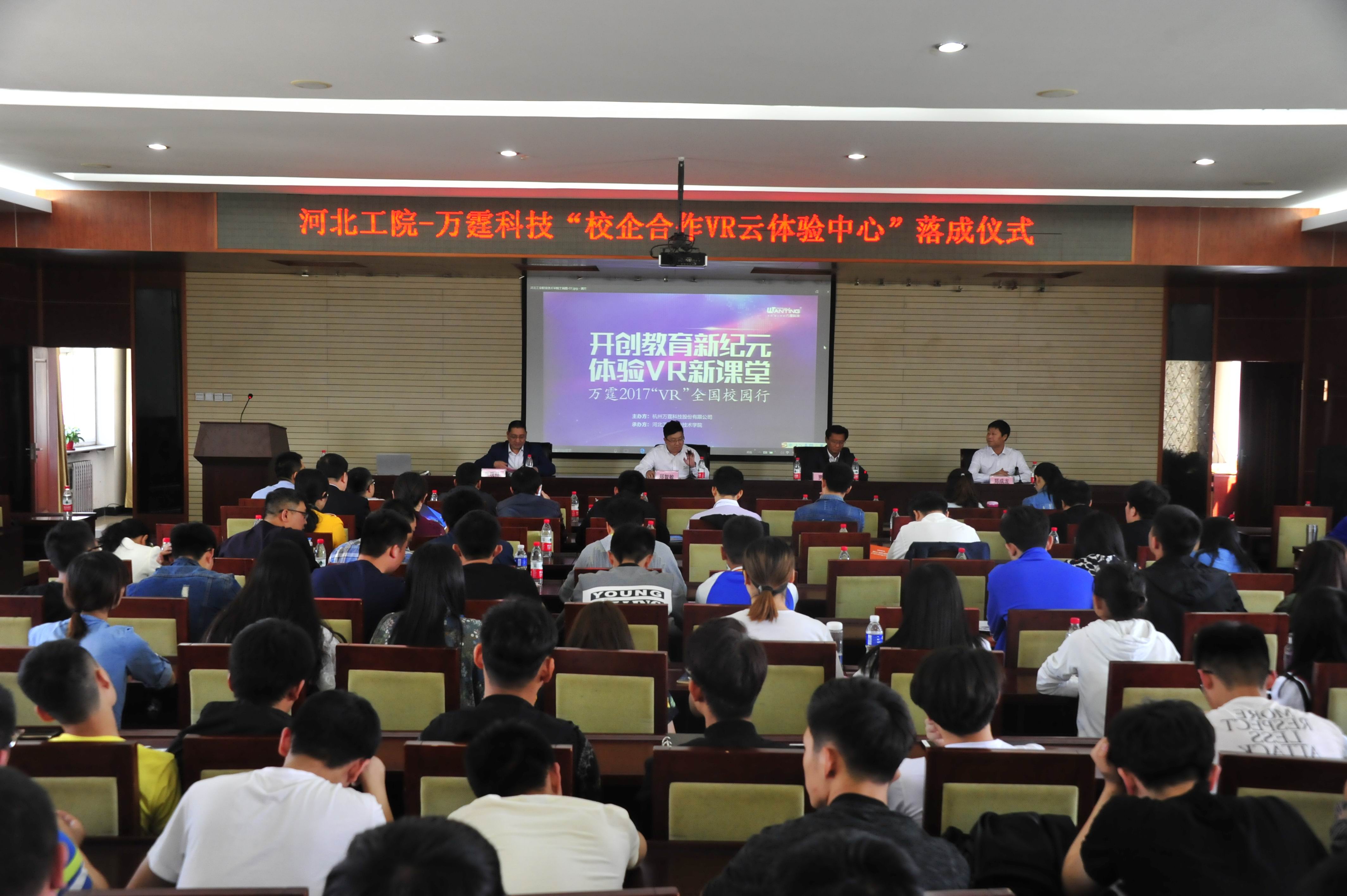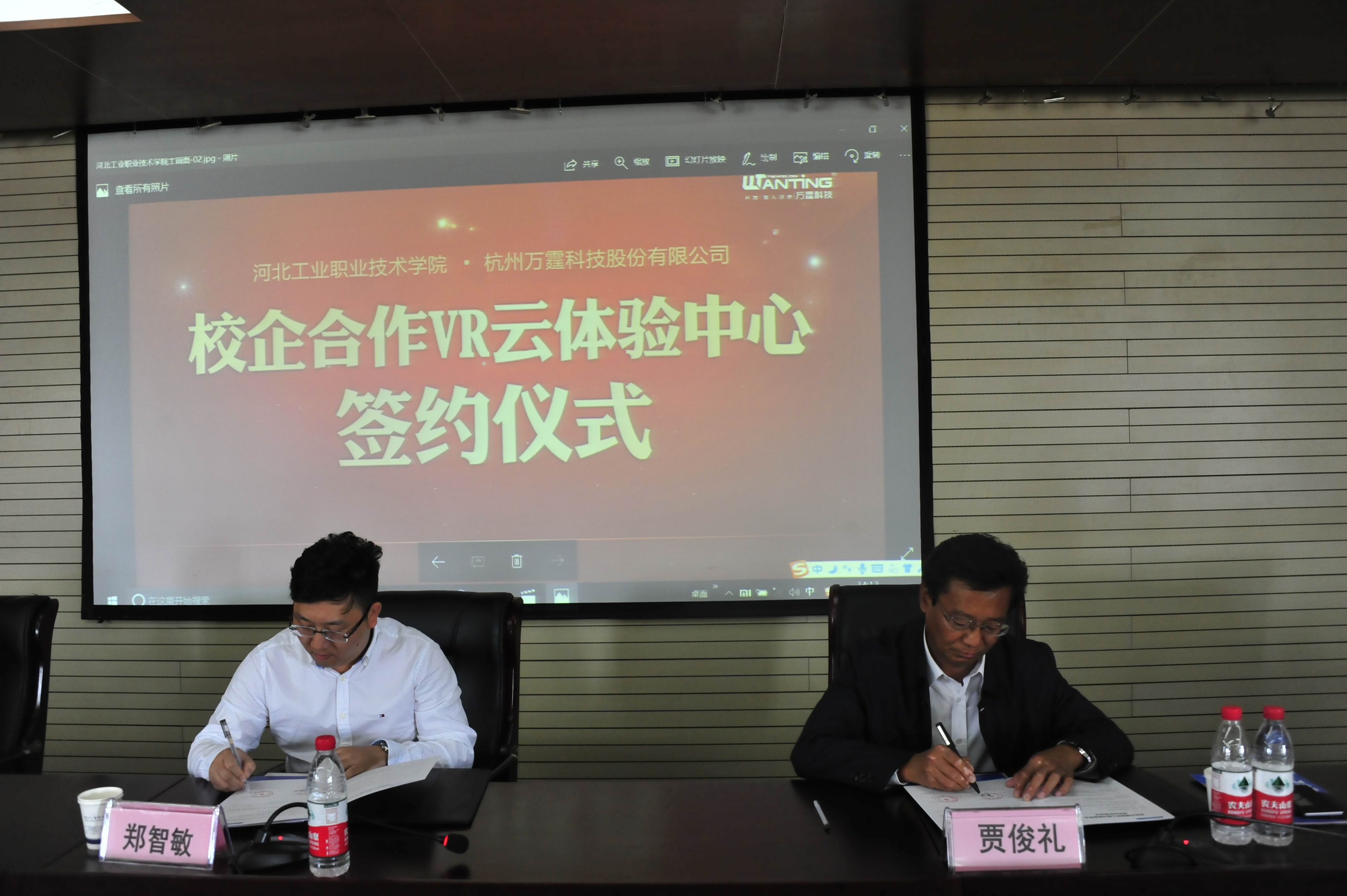 4月22日下午,我院与杭州万霆科技有限公司合作共建河北省首家建筑工程“VR云体验中心”签约仪式在我院报告厅举行。学院院长贾俊礼,杭州万霆科技有限公司副总裁郑智敏、营销总监郑成龙,省内建筑企业、院校教师代表,建工系领导、教师及学生代表共同出席了本次签约仪式。