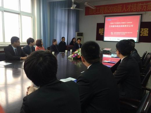 4月5日,我院机电工程系2017届毕业生24名奔赴中国电子科技集团公司第四十五研究所的国有控股公司——三河建华高科有限责任公司顶岗实习,该公司为我院学生准备了隆重的欢迎会,杜斌伟总经理亲致欢迎词。