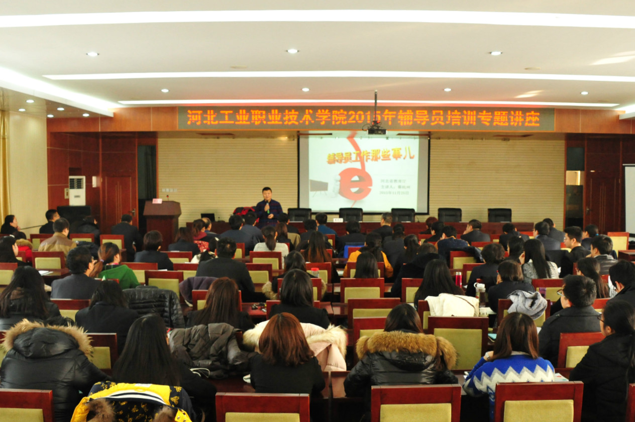 11月25日,学院特别邀请河北省教育厅思政体卫处副处长、德育研究中心蔡杭州副主任来我院为全体辅导员做专题讲座。学院学工部负责人、各系党总支书记、副书记、团总支书记和全体专、兼职辅导员一起聆听了蔡杭州老师精彩的讲座。
