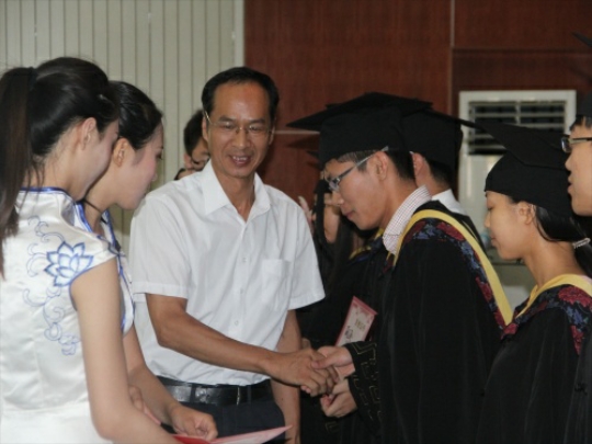 党委书记王振杰在毕业典礼现场为优秀毕业生颁发证书