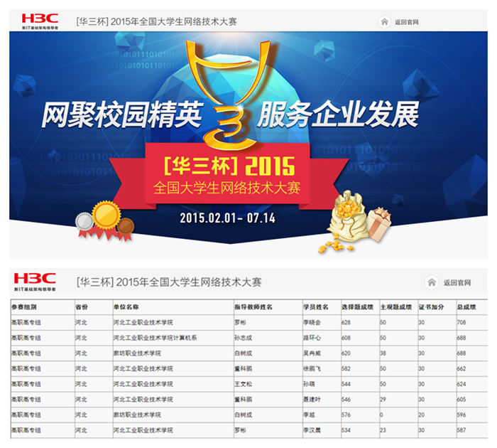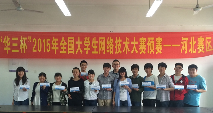 近日,我院选派14名学生参加2015年“华三杯”全国大学生网络技术大赛河北赛区预选赛,与来自省内12所专科院校的75名参赛选手展开激烈角逐。李晓会、路环心、徐鹏飞、孙萌、聂建叶、李汉晨6名同学脱颖而出,在8强中抢占6个席位,携手挺进复赛阶段,继而向全国总决赛发起冲击。