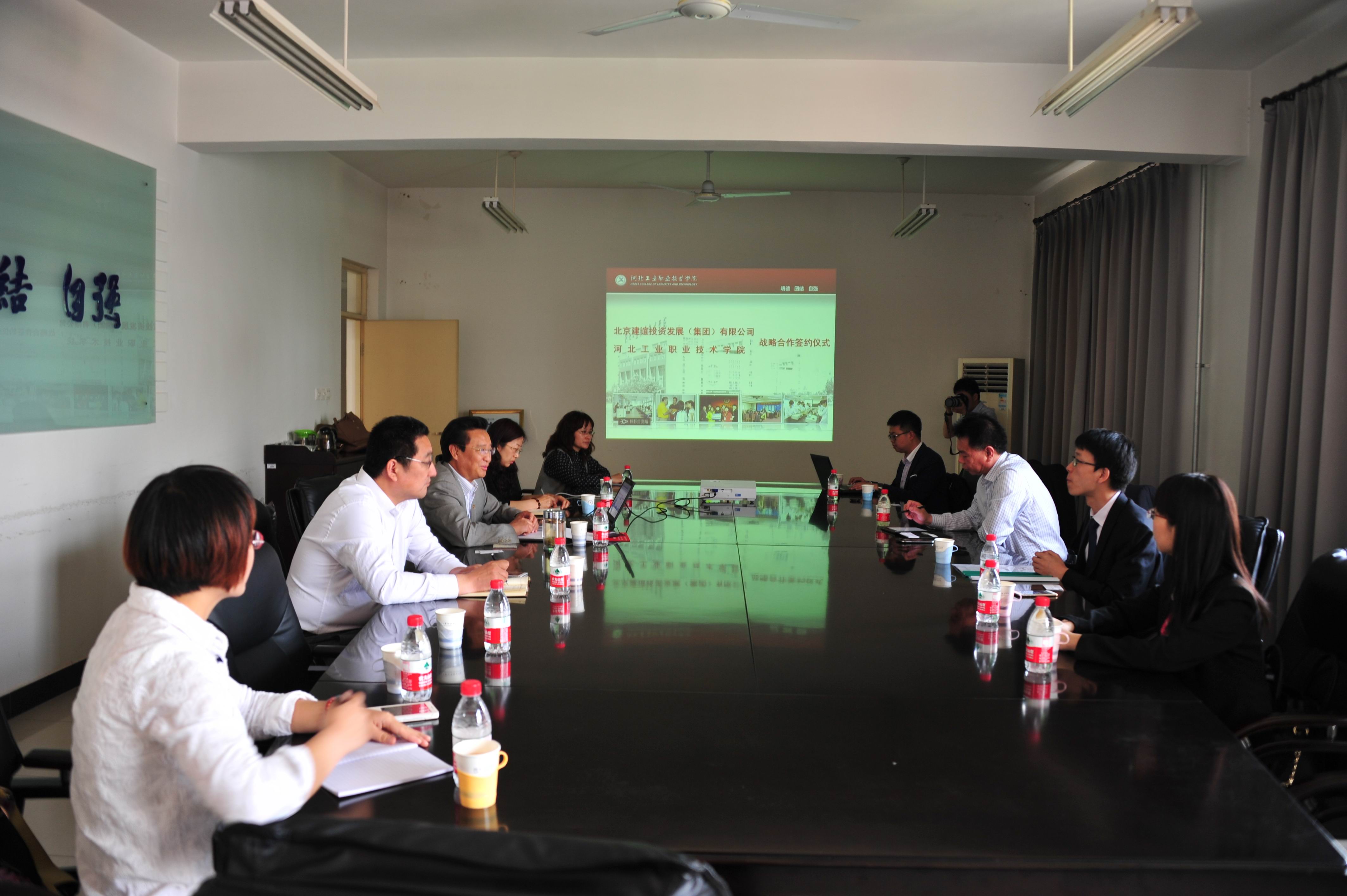 贾俊礼院长首先向建谊集团的代表介绍了学院基本情况,发展规划以及学院近年来开展校企合作的情况。随后建谊集团的王洪涛副总裁介绍了集团的发展情况与发展战略。当天下午,建谊集团总裁助理兼人资行政中心总监王强一行人与我院学生进行了交流,介绍了公司情况、发展战略,解答同学们专业方面相关问题,欢迎我系学生到建谊集团实习与工作,对学院2016毕业生表现出的综合素质、职业素养和专业技能给予了充分肯定。