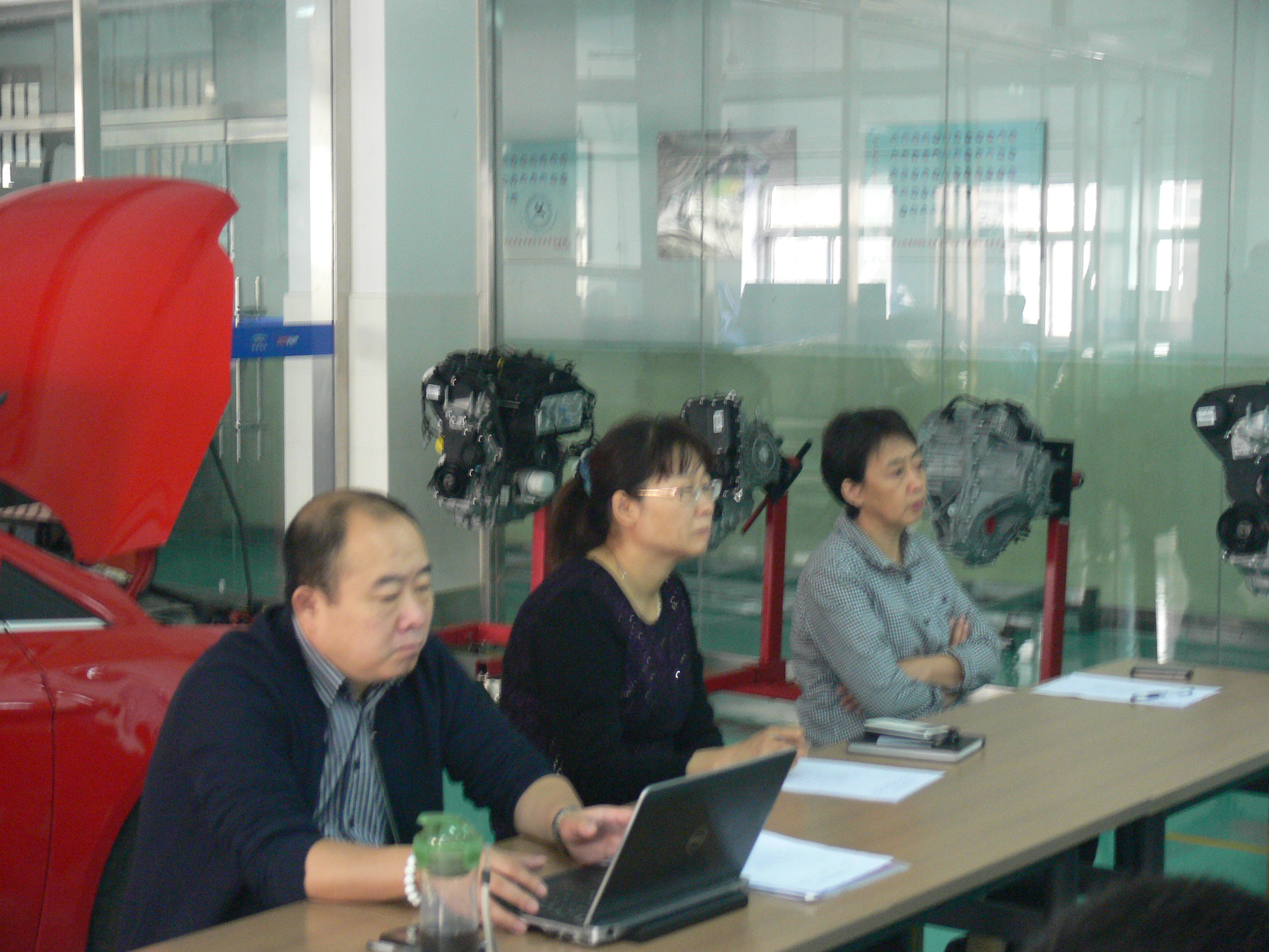 长安福特有限公司培训中心主管黄建川等一行三人到到我院进行此项工作,此次评估内容主要包括学生评教、专家评教、检查定向班教学物料的管理及使用状态、检查定向班学生档案管理工作及检查定向班的教学场地等几个方面。