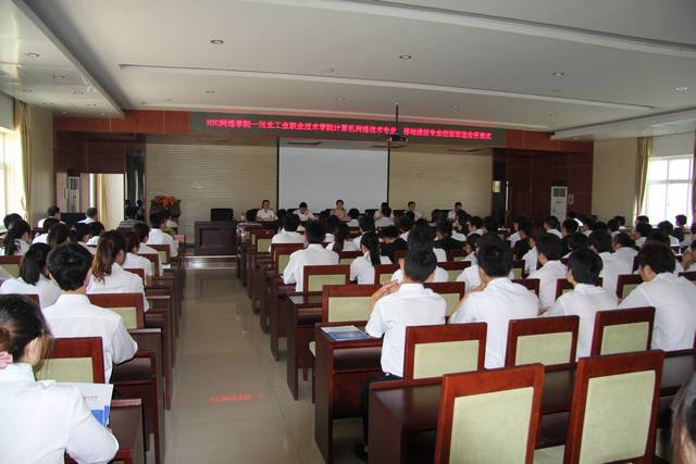 为进一步探索校企合作新模式,创新人才培养方式,全面提升我院毕业生就业质量。2009年起,我院计算机技术系与河北华网智通信技术有限公司签订校企合作协议,开展校企合作、共建专业,实施订单培养,采用2+1的人才培养模式。目前,2010级订单班学生即将完成在校两年的系统专业学习步入实习岗位,举办本次推介会地目的就是使他们进一步了解企业、熟悉行业现状、找准自身定位,走稳、走扎实进入职场的第一步。经过自我展示、推荐和面试,70%的学生当场即与用人单位达成工作意向。