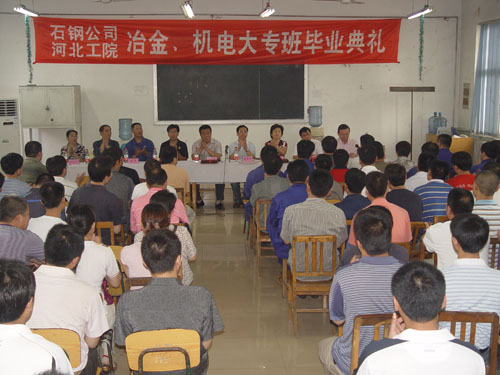 6月19日上午,由我院与石钢集团公司联合培养的第一期成人学历教育业余班毕业典礼在石钢技校礼堂隆重举行,石钢公司范宝恕副总经理、人力资源部汪统部长,我院王世龙副院长及相关系部主任出席了毕业典礼。