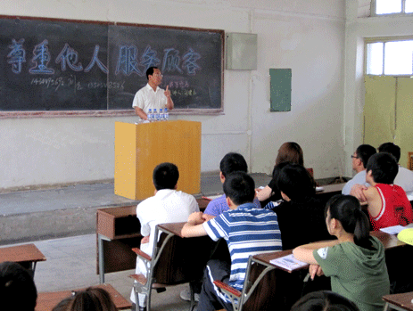 刘建山先生在企业从事营销工作11年,讲座中,他围绕“尊重他人,服务顾客”的主题,针对学生的专业情况,通过大量市场经营实战案例,与同学们分享了自己多年在营销行业的经验,特别是他在河北新世纪药业有限公司任职期间,从一名普通的销售人员,通过不懈努力和学习,一直提升到经理的历程,为同学们摆正就业心态,更好的走出社会、适应社会提供了一个生动、形象的案例。同学们听的聚精会神,精彩处掌声热烈,使教室洋溢着浓厚的学习与交流氛围。在互动问答环节中,同学们踊跃提问,刘经理精彩解答。