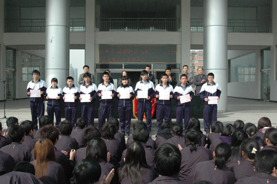党委副书记王建刚对2009年中涌现出来的25名先进学生个人及先进事迹给予了充分肯定和表扬。他强调,在全面深化国家示范院校建设中,广大学生树立了大局意识,发扬团结协作精神,克服困难,取得了突出成绩。这其间涌现出许许多多的动人事迹,让人感怀、催人奋进,彰显了学院文化和工院人精神。他要求获奖学生戒骄戒躁,发挥好模范带头作用,同时号召全体同学以受表彰的学生为榜样,热爱工院、建设工院、宣传工院,秉承工院优良传统和校园文化,为实现我院“夯内涵、建品牌、上层次”的战略目标而努力奋斗,为国家建设努力成才。