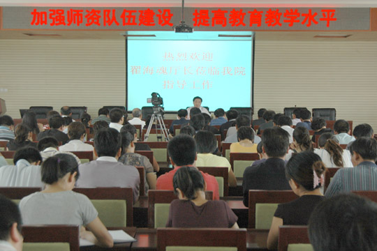 8月28日下午,我院“2009年度师资培训班”特别邀请河北省教育厅副厅长翟海魂作“校园文化与职业教育”专题报告。报告会由院长董兆伟主持,全体院领导出席报告会,学院的教授、教研室主任、部分教师及科级以上干部聆听了讲座。