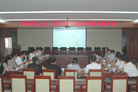 董兆伟院长对来访人员表示热烈欢迎,希望两校相互取长补短,共同发展。董院长向客人们介绍了我院的发展历程、办学定位和国家示范院校建设情况,特别是在课程建设、人才培养模式改革、师资队伍建设以及社会服务等方面取得的成果。山东工业职业学院一行对我院教学改革工作给予了高度评价,对学院发展取得的成绩表示赞赏。