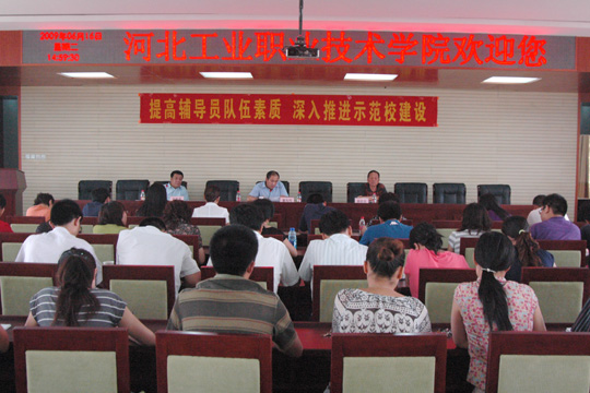 董院长做了重要讲话。他重申了《教育部关于全面提高高等职业教育教学质量的若干意见》(教高【2006】16号)文件对深化示范院校建设的指导意义,并对学院“夯内涵、建品牌、上层次”的战略目标进行了解读。对辅导员工作在建设示范院校的过程中起到的作用给予了高度评价。董院长认为,辅导员工作在维护学生学习和生活环境稳定、保障正常的教学秩序、深化学风建设和校园文化建设等方面发挥着重要的作用。董院长指出,做好辅导员工作,首先要爱岗敬业,全身心地去投入;其次要不断地学习,努力做到“学博为师,德高为范”,三是将管理学生转变为服务学生,在教育中应体现出爱心、细心和耐心。例如在组织举办文体活动时,宣传主题要明确突出,用精彩的内容来吸引、调动学生参与的积极性。在谈到毕业生顶岗实习的管理工作时,董院长强调既要重视对学生的理论教学管理,又要加强对其系统的实践教学管理,实现两者相互促进、协调发展。