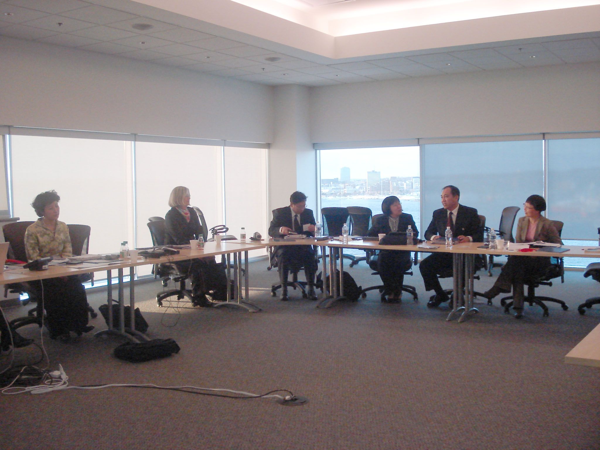 北京时间2009年元月3日,董兆伟院长带领我院环境化学工程系主任刘建秋、计算机系主任姜波、法律和经济贸易系主任商亚萍、外事办主任周利一行5人在加拿大NSCC学院与加拿大NSCC学院教务处长Claudine Lowry、人力资源培训部部长Maria Desjiardins、Porfolio项目负责人Brian Dewey、NSCC学院评估负责人Sue Drapeau等人进行了专题交流。