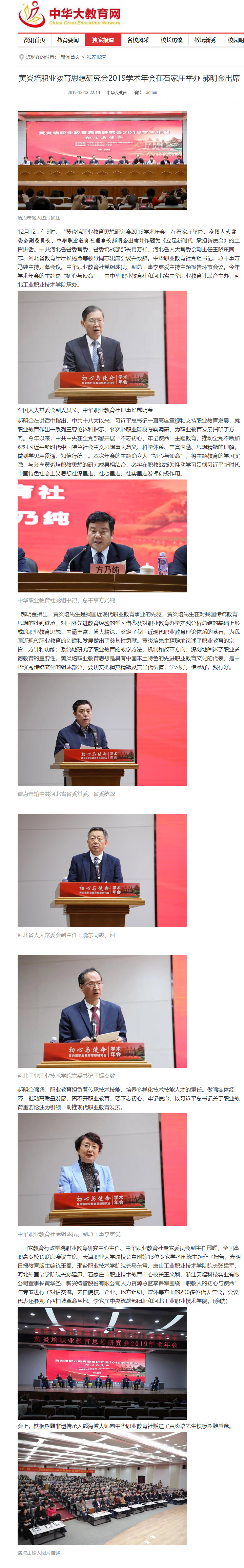 中华大教育网报道黄炎培职业教育思想研究会2019学术年会在我院举办