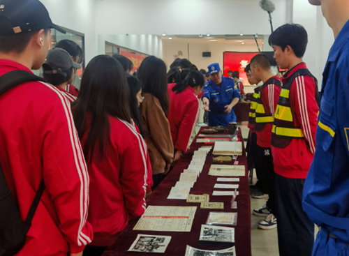 在活动现场,展台上整齐地陈列了照片、报刊、衣物、粮食、武器等多种形式的红色历史文物,涵盖了抗日战争时期、解放战争时期、抗美援朝时期、对越自卫反击战时期等不同历史时期的共计120余件历史文物。活动中,解说员深情地解说着每一件文物的来历、背后的感人故事和催人奋进的英雄事迹。一帧帧照片,一幕幕场景,一件件文物,再现了人民英雄英勇抗击敌人、誓死保卫家园的英雄气概和家国情怀。学生们悉心聆听,用心感受,从红色文物和英烈故事中重温革命发展历史,汲取先进力量,从而厚植爱国爱党情怀,树立远大理想,激励奋斗前进。