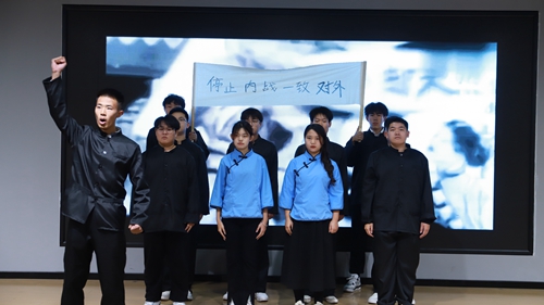 通过此次纪念一二·九运动音诗画展演,弘扬伟大的爱国精神,进一步激发了学生的爱国热情,引导广大青年学生牢记初心使命,坚定理想信念,把爱国情、强国志、报国行付诸实践,展现青年昂扬的斗志与精神风貌。
