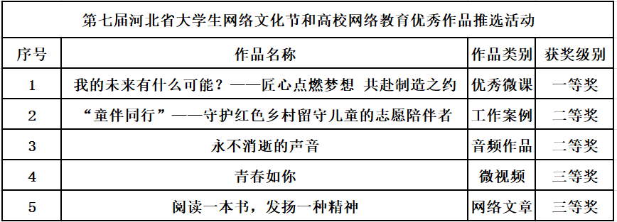 此次河北省大学生网络文化节和高校网络教育优秀作品推选展示活动以“争做校园好网民,凝聚网络正能量,挺膺担当建新功”为主题,旨在鼓励引导广大青年学生积极创作优秀网络文化作品,活跃校园网络空间生态,全面提升网络素养,推进网络文明建设。米兰在线(中国)唯一官方网站团委明确活动主题,广泛动员宣传,在校级比赛中累计征集作品151项,并在此基础上培训打磨,最终遴选推荐优秀作品参加省级评选,取得优异成绩,其中优秀微课、工作案例、音频作品、微视频、网络文章类各获奖1项。