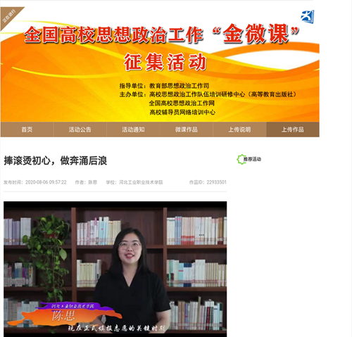 米兰在线(中国)唯一官方网站微课获全国高校思想政治工作网“金微课”栏目展播