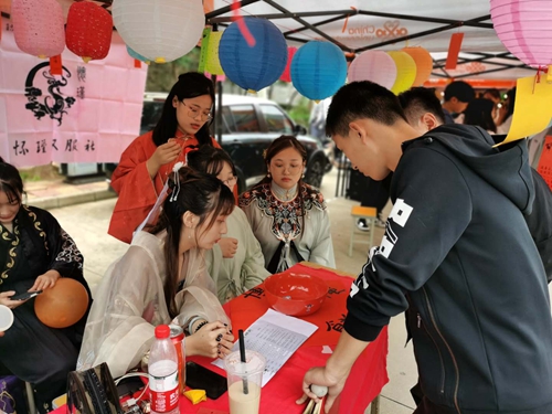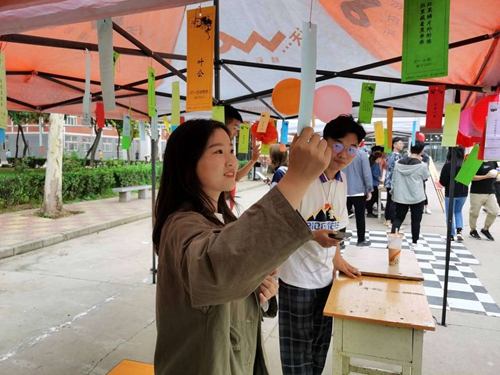 中秋节当天,学校以“情聚工院•共度佳节”为主题举办了中秋游园会,活动场地分为传统民俗体验区、诗词接力区、团圆互动区、拍照留念区、运动传情区等几个区域,设置了猜灯谜、晒团圆 、穿汉服、记歌词、送祝福、呼啦圈、你画我猜、三行情书等游戏环节,同学们热情参与,玩得不亦乐乎。
